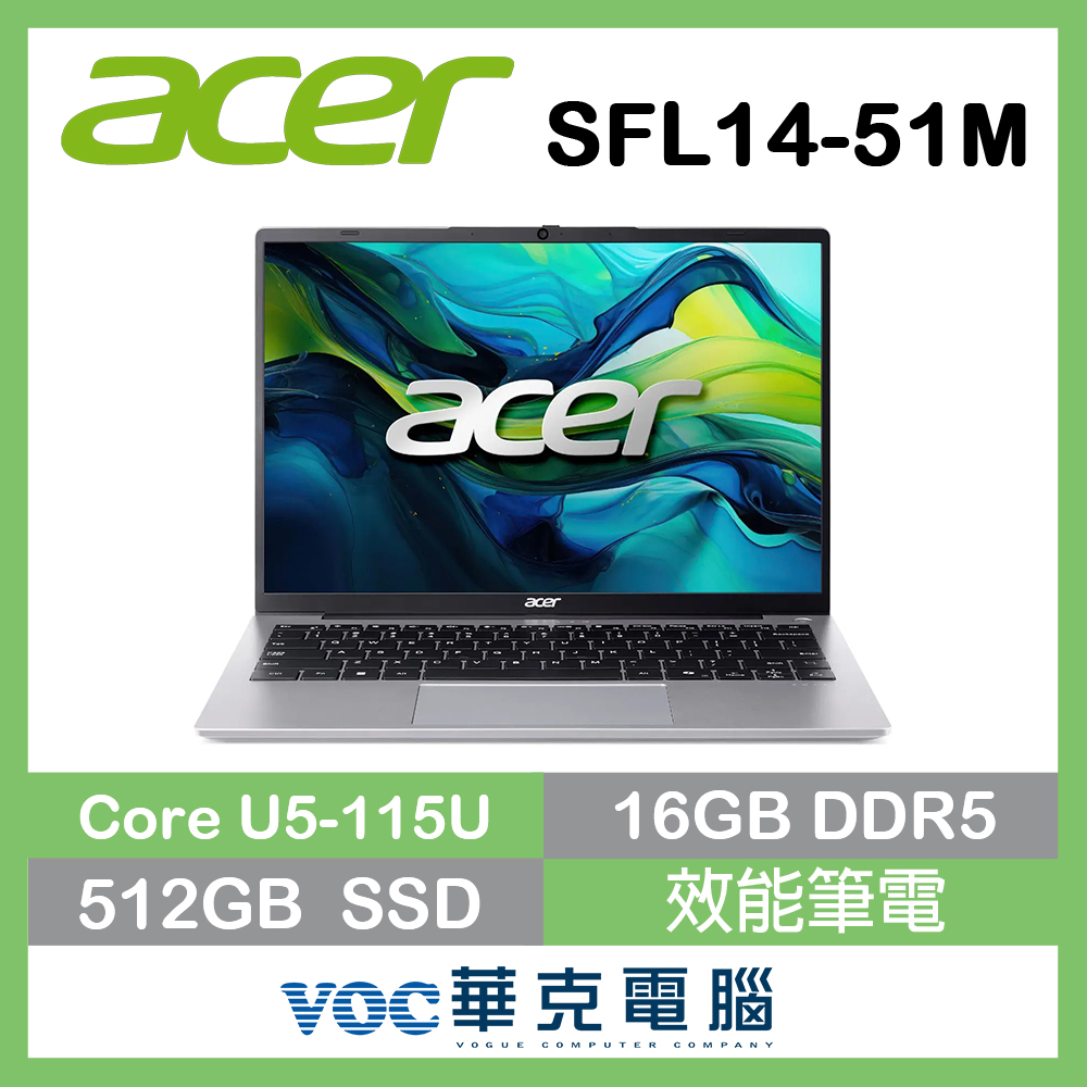 acer 宏碁Swift Lite 14 SFL14-51M-54Q6 14吋 文書筆電 銀(Ultra 5-115U 8G+8G 512G SSD WUXGA 14 W11)