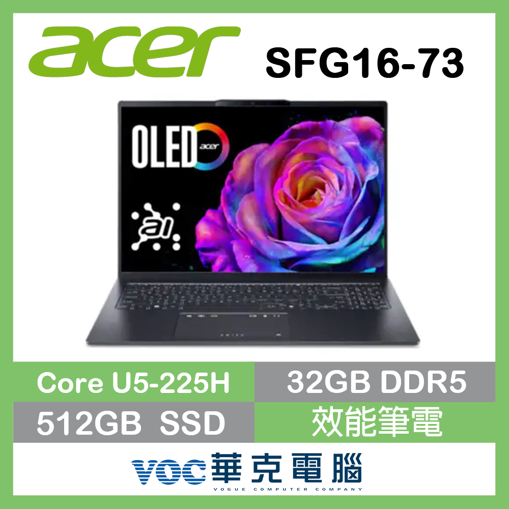 商品名 / | acer 宏碁Swift Go 16 SFG16-73-529D AI效能筆電 16吋 灰(Ultra 5 225H 32G 512G SSD W11 OLED) |