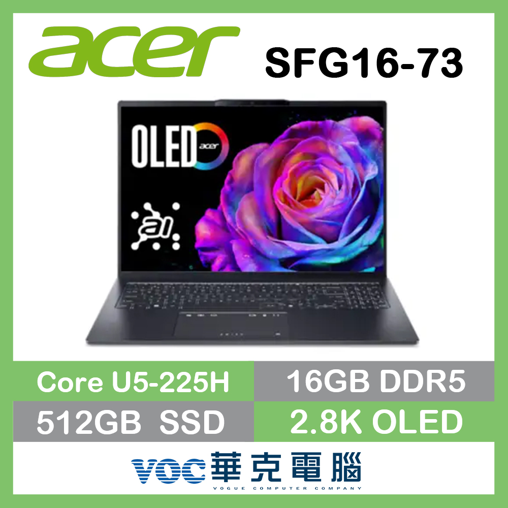 商品名 / | acer 宏碁Swift Go 16 SFG16-73-53U8 AI效能筆電 16吋 灰(Ultra 5 225H 16G 512G SSD W11 OLED 16) |