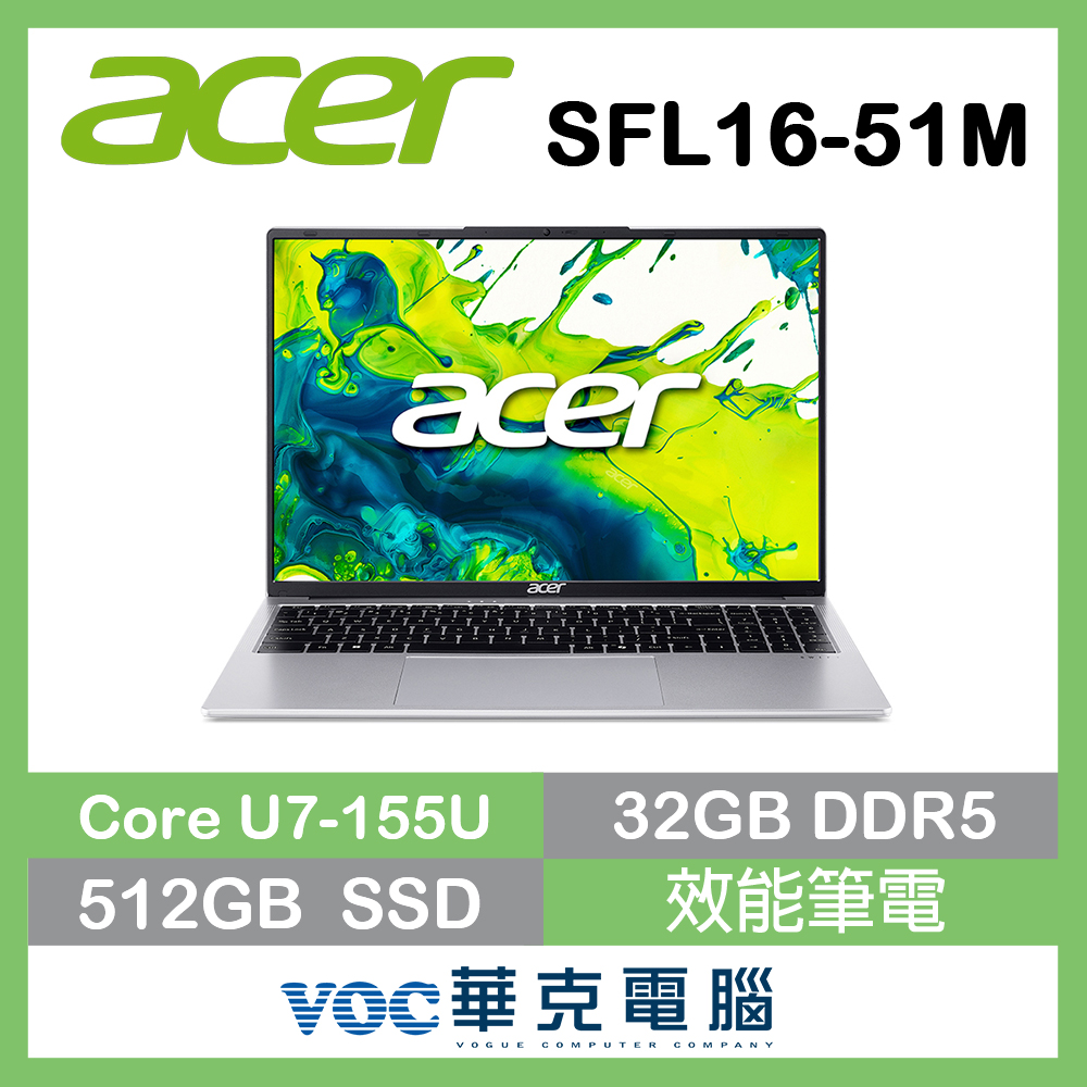 商品名 / | acer 宏碁Swift Lite 16 SFL16-51M-74W7 16吋 輕薄AI筆電 銀 (Ultra 7-155U 32G 512G SSD WUXGA 16 W11) |