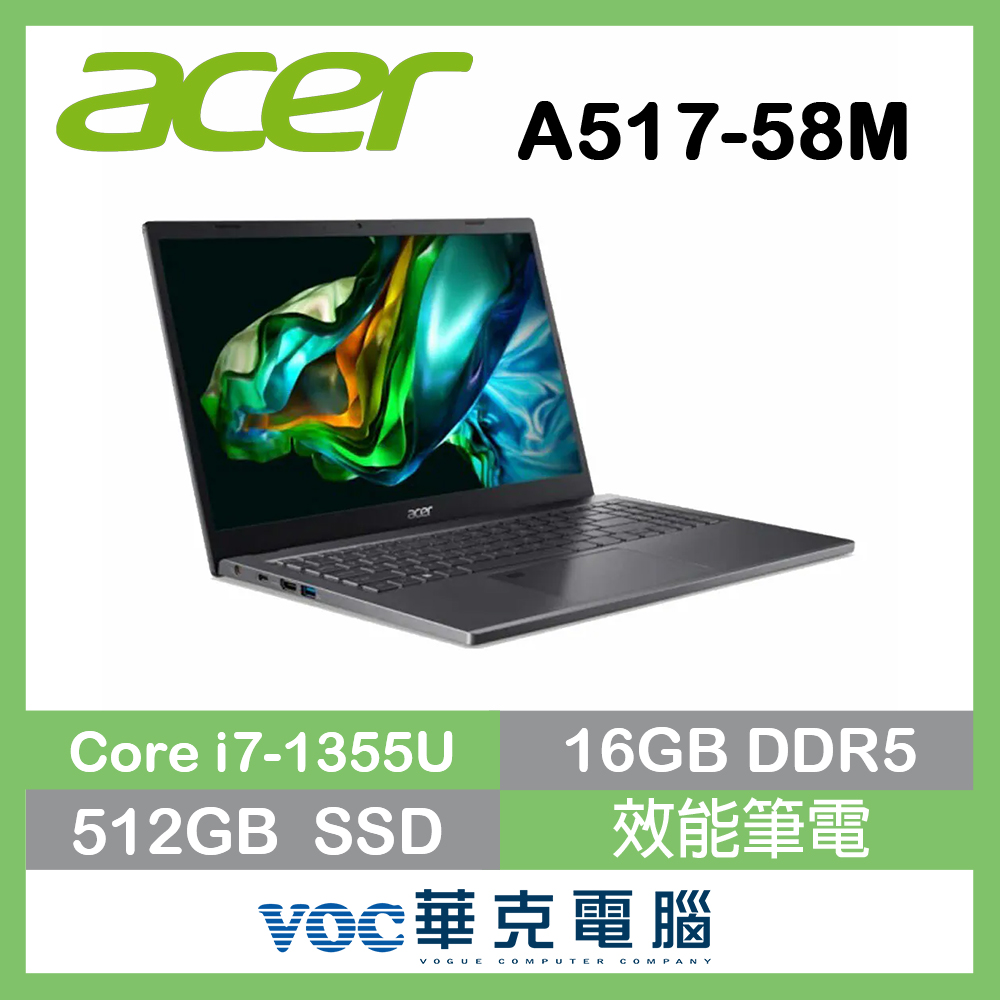 簡介 / | acer 宏碁Aspire 5 A517-58M-7661 金屬灰(i7-1355U 16G 512G SSD 17.3吋FHD Win11)效能筆電:●型號:A517-58M-7661金屬灰Aspire5●處理器:IntelCorei7-1355U10核心 12緒1 |