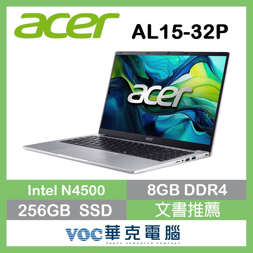 商品名 / | acer 宏碁Aspire Lite AL15-32P-C9CX 15.6吋 文書筆電 銀(Celeron N4500 8G 256G W11) |