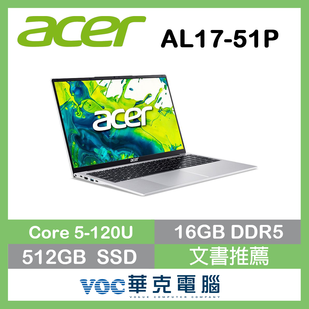 簡介 / | acer 宏碁Aspire Lite AL17-51P-57Z0 17.3吋效能筆電 銀(C5-120U 16G 512G W11):型號:AL17-51P-57Z0作業系統:Windows11HomeCPU:Intel®Core™5processor120Uclock Turbo:1. |