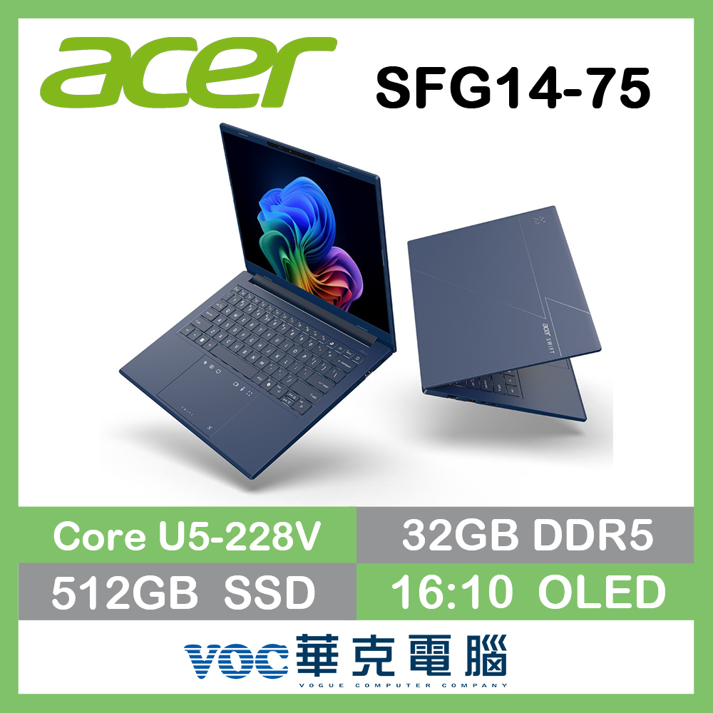 商品名 / | acer 宏碁Swift Go SFG14-75-5948 藍色(CU5-228V 32G 512G W11 WUXGA OLED)14吋AI效能筆電 |