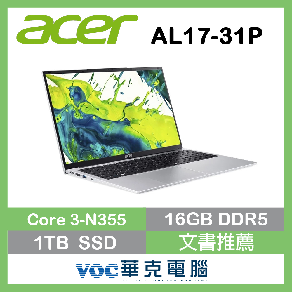 acer 宏碁Aspire Lite AL17-31P-39N6 (C3-N355 16G LPD5 1TB Win11 17吋)大尺寸輕薄電腦