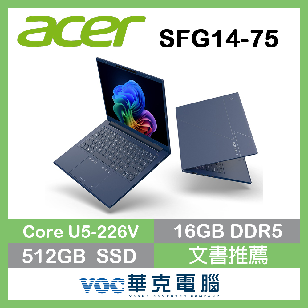 商品名 / | acer 宏碁Swift Go SFG14-75-59DG 藍色(CU5-226V 16G 512G W11 WUXGA OLED)14吋AI效能筆電 |