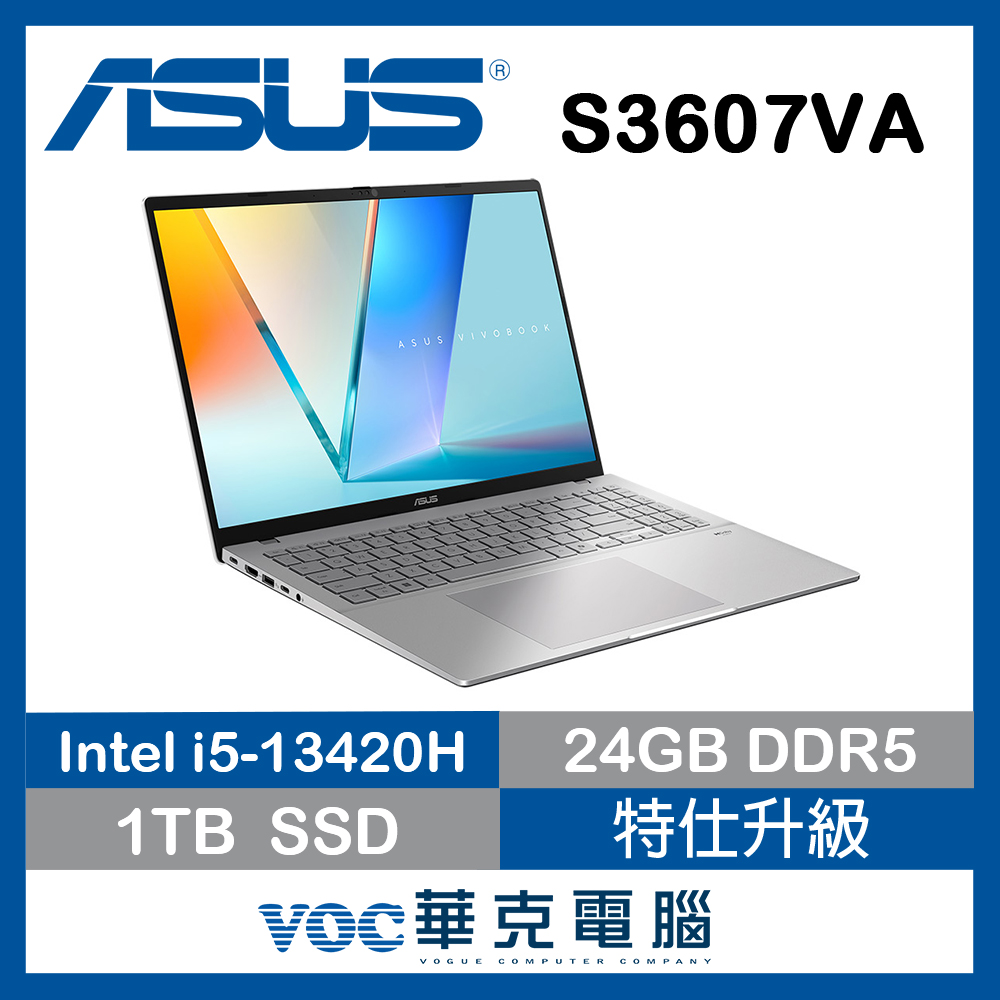 ASUS 華碩Vivobook S16 S3607VA-0052S13420H 銀 (i5-13420H 8G+16G 1T SSD WUXGA 16 W11) 特仕筆電 贈筆電手提包+滑鼠+多功能集線器