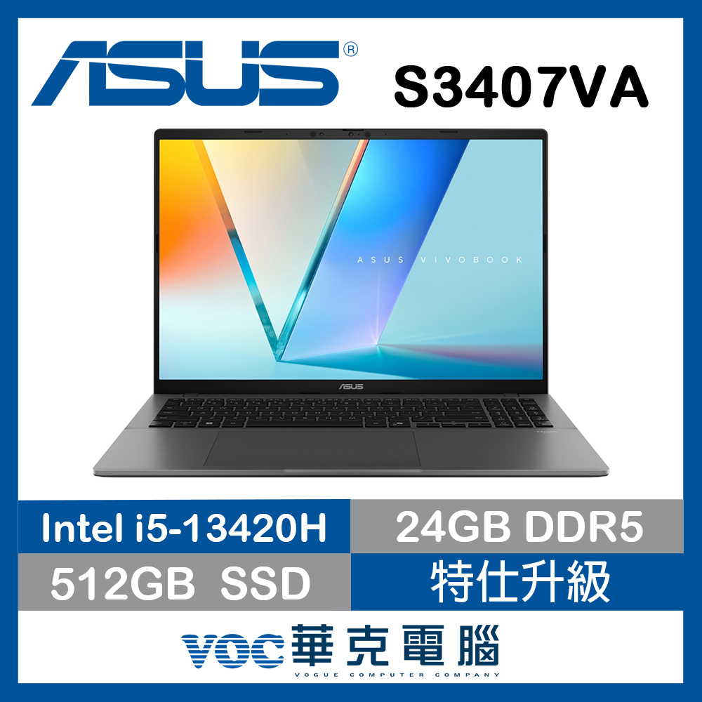 ASUS 華碩VivoBook S14 S3407VA-0052G13420H 灰(i5-13420H 8G+16G 512G SSD WUXGA 14 W11)特仕筆電 贈筆電手提包+滑鼠+多功能集線器