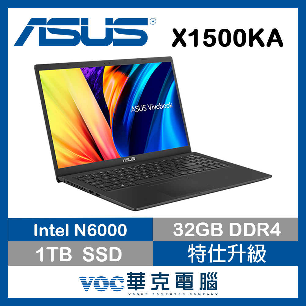 內容簡介 規格說明 ASUS X1500KA-0441KN6000 詳細規格表★15"文書機入門首選★Intel 處理器 N6000 83% 屏佔比★可擴充2.5" SATA硬碟 (附套件)--------------------------------------------●主要規格: --------------------------------------------.顏色:搖滾黑.LCD尺寸:15.6" FHD (1920 x 1080) 16:9 aspect ratio 60Hz refresh rate.處理器:Intel® Pentium® Silver N6000 Processor 1.1 GHz (4M Cache, up to 3.3 GHz, 4 cores).記憶體:32G DDR4(由工程師拆封安裝測試後出貨).顯卡:Intel® UHD Graphics.硬碟:1TB M.2 NVMe™ PCIe® 4.0 SSD (由工程師抽換硬碟 系統安裝於新硬碟).網路:Wi-Fi 5(802.11ac) (Dual band) 1*1 + Bluetooth® 5.1 Wireless Card (*Bluetooth® version may change with OS version different.).尺寸:36.02 x 23.49 x 1.99 ~ 1.99 cm.重量:1.80 kg (含電池).電池:37WHrs, 2S1P, 2-cell Li-ion.電源:4.0, 33W AC Adapter, Output: 19V DC, 1.75A, 33W, Input: 100-240V AC 50 60Hz universal.攝影機:720p HD camera.音效:SonicMaster, Built-in speaker, Built-in microphone, with Cortana support.作業系統:Windows 11 Home - ASUS recommends Windows 11 Pro for business--------------------------------------------●輸入輸出介面(I O):--------------------------------------------1x USB 3.2 Gen 1 Type-A1x USB 3.2 Gen 1 Type-C2x USB 2.0 Type-A1x HDMI 1.41x 3.5mm Combo Audio Jack1x DC-in標準配備HDD擴充套件