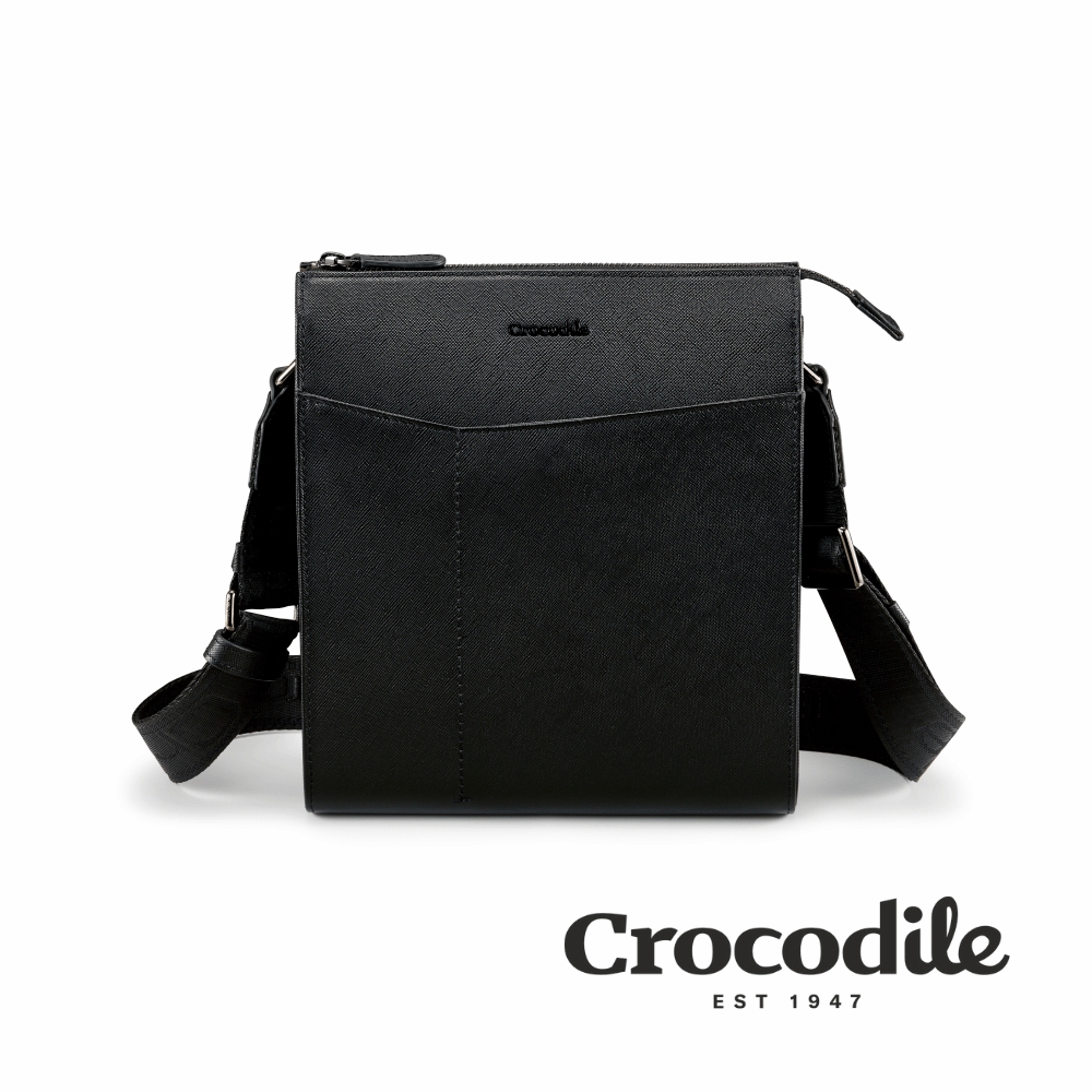 Crocodile 鱷魚皮件 直式側背包 男生斜背包推薦 Aston系列 0104-11302-黑藍兩色 黑色