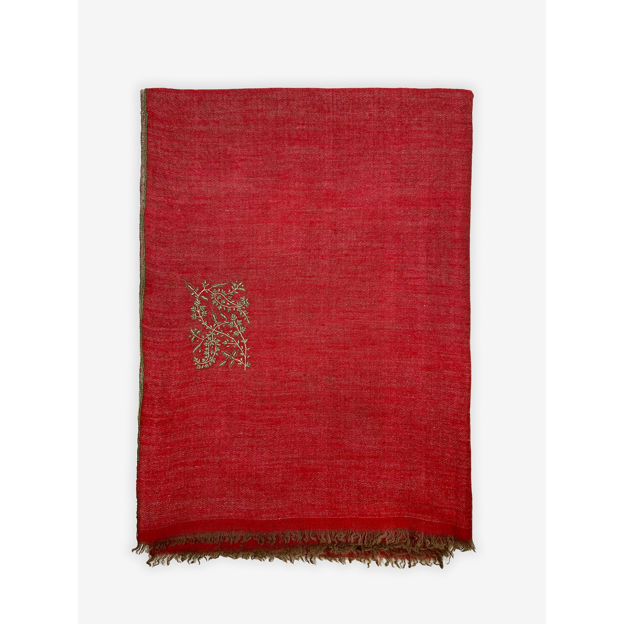 《Bala Shawls》Hand Embroidered Pashmina 喀什米爾手工刺繡雙色披肩 點綴繡(紅)