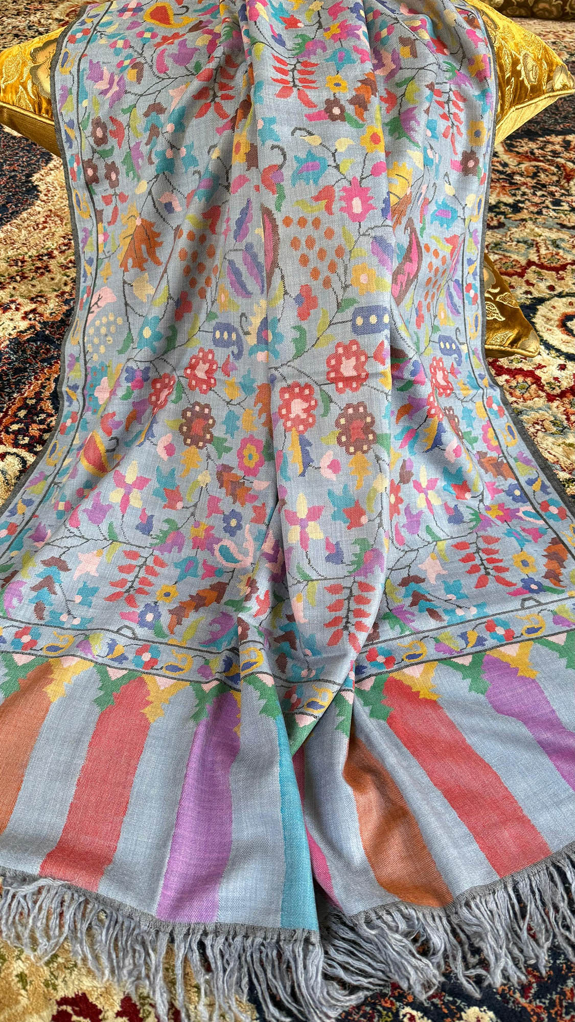 內容簡介 【特別注意】此款商品由印度寄出,配送時間約2-3週到貨。如遇連續假期或海關查驗可能影響到貨日期。感恩是所有美麗和偉大藝術的本質— 尼采The essence of all beautiful art, all great art, is gratitude. —NietzscheBala Shawls品牌來自北印喀什米爾邦,斯里納加(Kashmir, Srinagar ),由Bala家族裡三位兄弟共同經營,專售頂級手工pashmina、珠寶首飾。對土生土長在喀什米爾的Bala來說,Pashmina不單只是一件單品,自15世紀開始至今,它是喀什米爾當地百年精湛工藝技術與文化傳承力歷史,更是每位匠人的智慧與情感、純粹與寧靜 。善良、誠信、高品質,是堅持。平靜、優雅、有溫度,是氣質。如同一幅畫,溫度與生命融進了織品裡,背面立體的輪廓給人的視覺上截然不同感受,只有最熟練的工匠能織出一件精湛卡尼披肩,它可以是單品配件,也可以是一件精美藝術品,更是喀什米爾文化遺產與傳承, 是老祖先的智慧。︱商品介紹︱自15世紀由波斯聖人米爾·賽義德·阿里·哈馬多尼(Mir Sayyid Ali Hamadani) 來到喀什米爾與700名工匠一起傳授培訓當地人手工藝,其中之一就是【Pashmina】,Pashmina手工刺繡為當地代代相傳手工藝術。每件手工繡品都是職人老師傅們花上至少半年時間完成,每件作品集結精緻繡工、耐心、專注、信仰⋯更重要的是來自喀什米爾地區世紀工藝文化傳承。Pashmina是件單品同時也是藝術品,更是虔誠的祝福。而Pashmina常見有兩種工藝,一種是刺繡embroidery,而另一種是編織Woven。 早期剛傳入歐洲時,大家認為刺繡就是最厲害精湛工藝,直到發現有一種「編織」需要花上刺繡3倍時間來完成而驚訝不已! 當時稱為「 Kani Kar」。Kani代表著小的木製線軸木棒,編織的工匠照著設計師給的圖及稱為Talim的符號慢慢織出一件披肩,過程中必須極大專注不可有任何出錯的可能,還要時不時修理太細而斷的線。每日工作5-7小時,僅能織出約2.5公分的進度,無論正面或反面都相當乾淨俐落,看不出任何多餘線頭在上方,最小尺寸70*200公分的滿版卡尼都要花至少3個月的時間完成。受到環境、進出口等因素,Kani一度消失近50年之久,手機當道的今天更無人願意製作,迫使政府不得不正視這問題,同時將卡尼納入喀什米爾非物質文化遺產中。手感的溫度是機器無法取代,也正是手工最迷人之魅力!百年喀什米爾工藝的卓越之美,靜靜等著一位也懂珍惜的您。