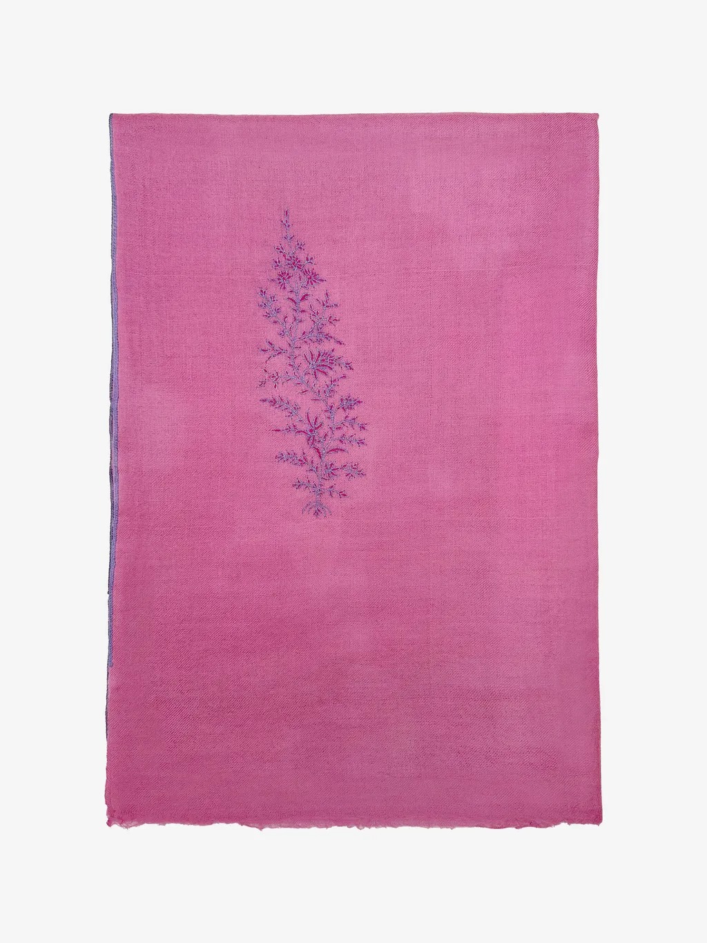 《Bala Shawls》Hand Embroidered Pashmina粉色花叢手工刺繡披肩