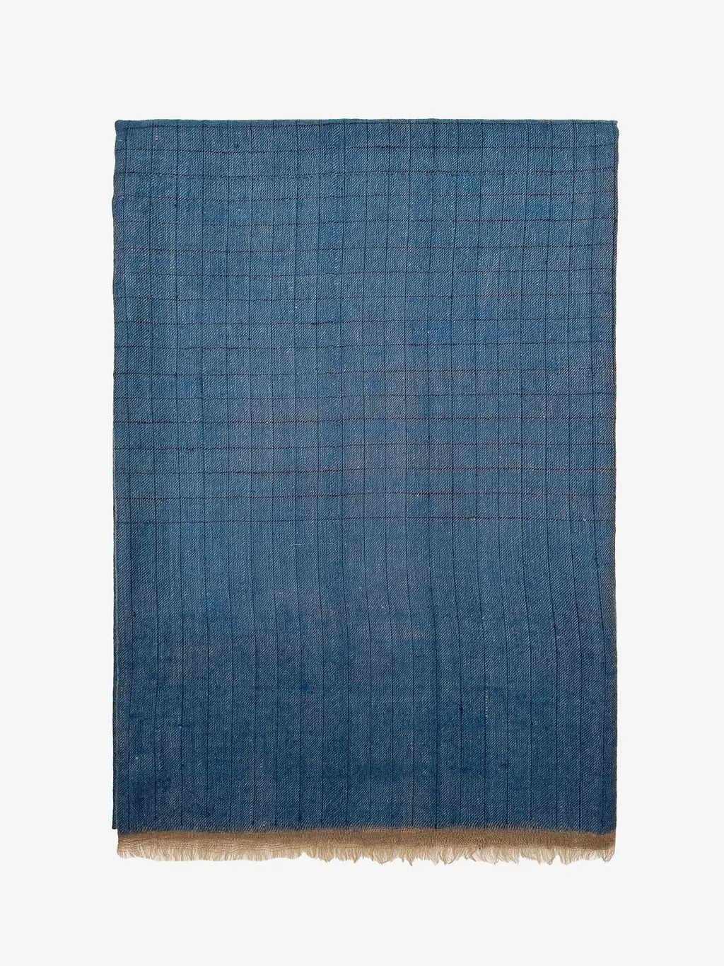 《Bala Shawls》Double Face Blue Check Pashmina藍色小格子雙面披肩