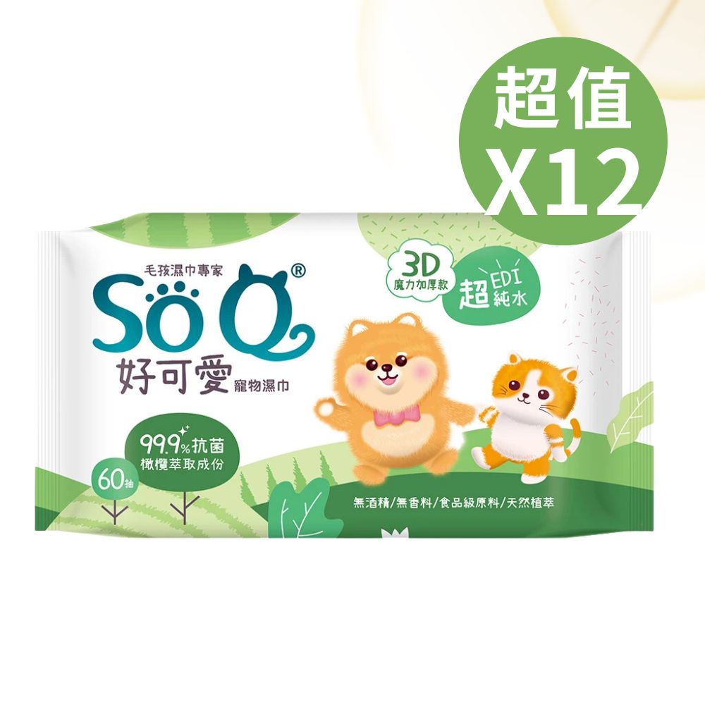 【南六】SOQ好可愛寵物濕巾-足部&屁屁專用-抗菌(60抽 包)x12