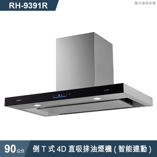 林內【RH-9391R】倒T式4D直吸排油煙機(智能連動)90cm(含全台安裝)