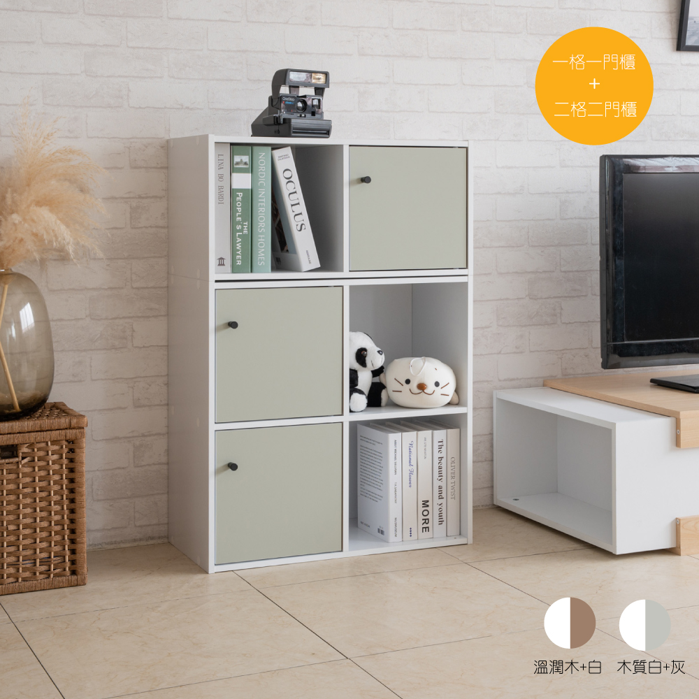 TZUMii可堆疊一格一門櫃+二格二門櫃 書櫃 置物櫃 收納櫃 層櫃 空櫃 門櫃 隔間櫃-雙色可選 木質白+灰
