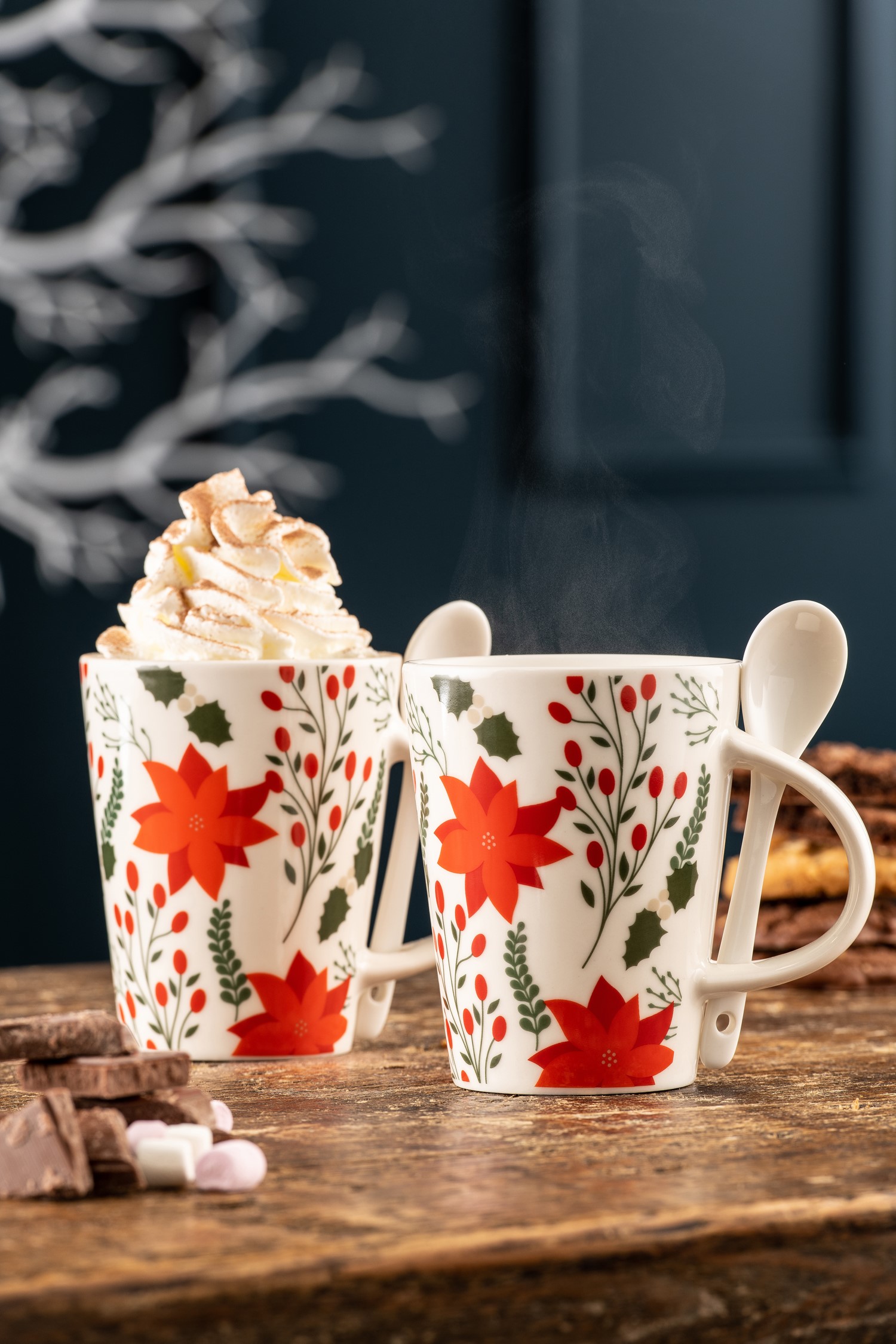 英國Aynsley|聖誕陶瓷馬克杯匙 2入組 交換禮物 聖誕紅