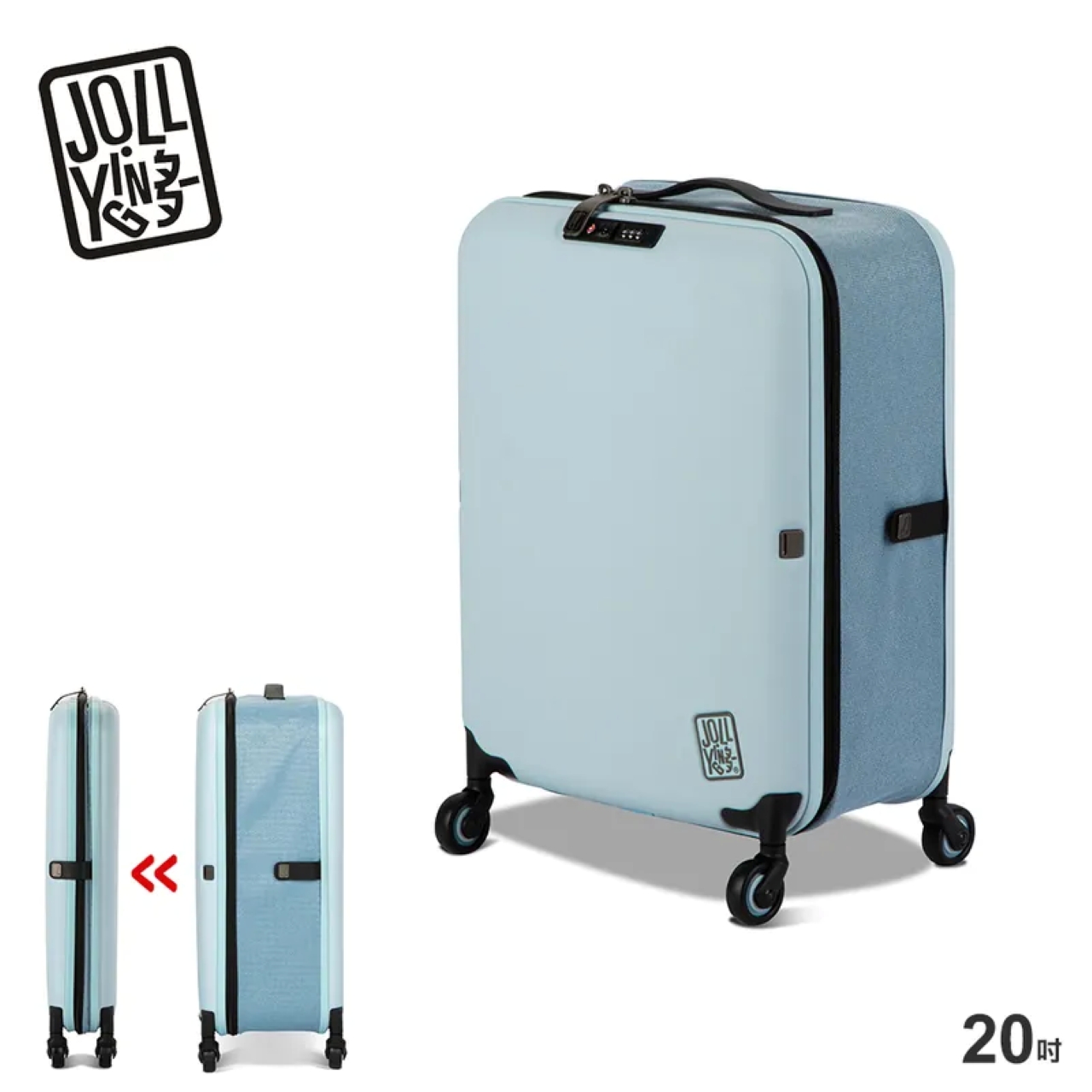 商品描述 | Jollying 20吋摺疊行李箱 淺藍:·於2022年榮獲德國iF設計獎·折疊式設計(打開尺寸):56x40x23cm/(摺疊尺寸):56x40x11cm·輕音萬向4輪,360度靈活轉向·三層PC箱體,耐抗壓,不 |