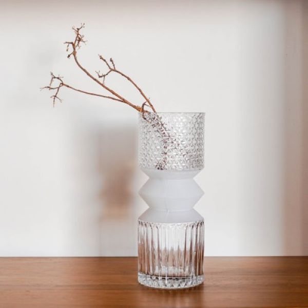 內容簡介 【Hübsch】-霧白色玻璃工藝造型花瓶 玻璃花窗工藝花瓶瓶身上下設計不同的紋理讓花瓶更具豐富性卻又不搶了花束本身的風采平時當擺件也是件藝術品品號:660804材質:玻璃顏色:透明尺寸:ø10xh25cm是否需要自行組裝:否