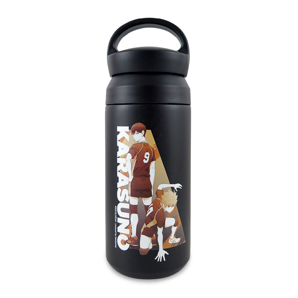 商品描述 | 排球少年保溫瓶 影日:商品特色.精細圖案印刷,人物的根根髮絲以及神情皆完整復刻.提把設計,可繫上繩子或是單手拎起,攜帶上非常便利.濾水孔設置,可以沖泡茶葉、果乾 |