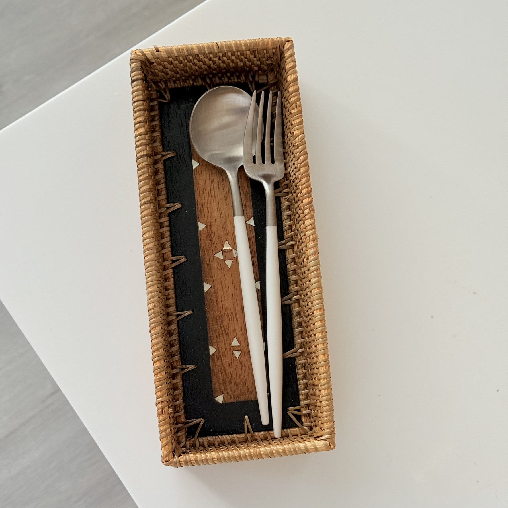 商品名 / | DecoDazzle.印尼手工藤編圖騰刀叉收納盤 |