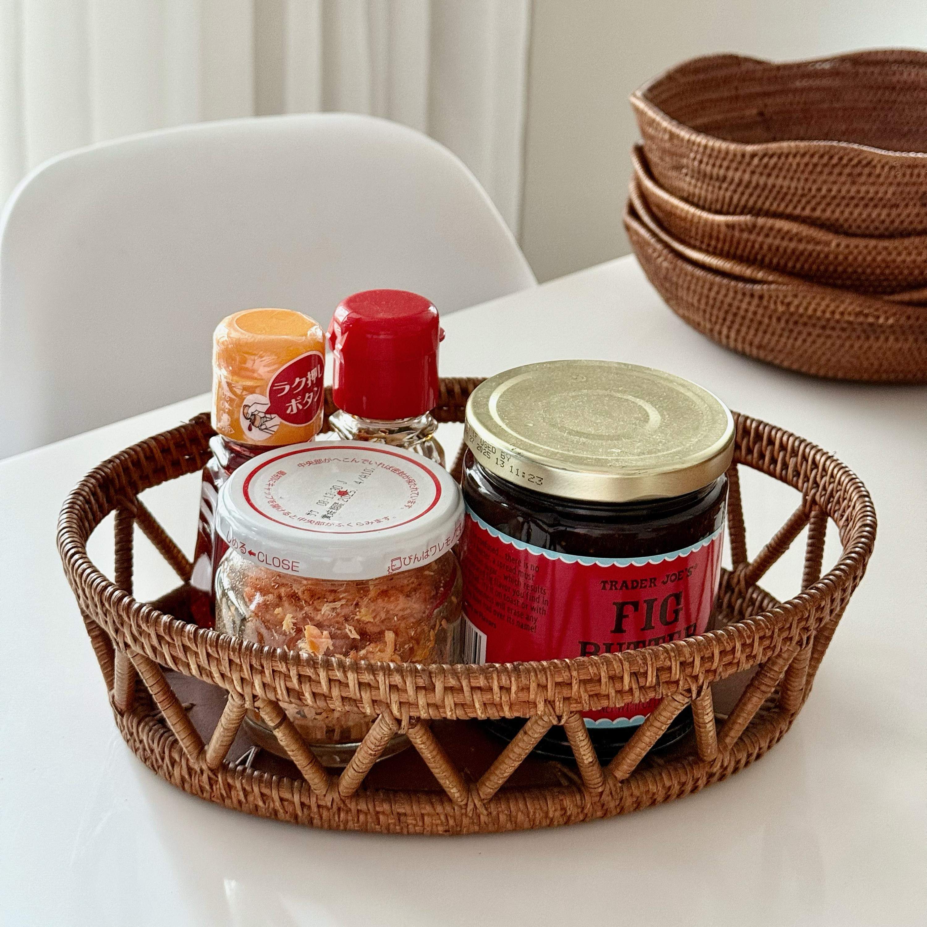 內容簡介 100% 印尼手工製作✅ 桌面收納好夥伴– 擺放鑰匙、飾品、髮圈,從此跟亂七八糟的桌面說再見!✅ 溫柔承裝水果 & 點心– 透氣的藤編結構讓水果保持乾爽,不悶不潮,擺上桌還增添自然感。✅ 浴室 & 化妝台必備– 收納化妝棉、護膚品、香氛蠟燭,讓日常保養更有儀式感。✅ 小巧輕盈、隨處好搭– 比起笨重的木盒,藤編籃輕巧好移動,放在任何角落都能瞬間提升空間溫度。✅ 手工溫度 & 自然質感– 每一個籃子都是職人手工編織,細膩的藤紋與圓潤造型,讓日常收納變成一種生活美學。
