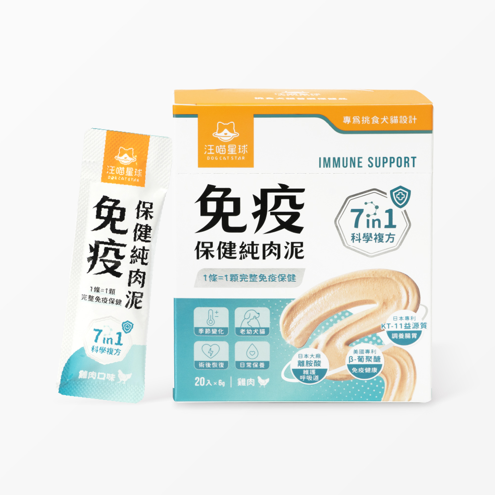 簡介 / | 汪喵星球免疫保健純肉泥 6g 20入組:保健變好吃,保養更簡單!•日本大廠275mg離胺酸維護呼吸道•美國專利Wellmune葡聚醣助免疫健康•日本專利KT-11益源質調養腸胃√季節變 |