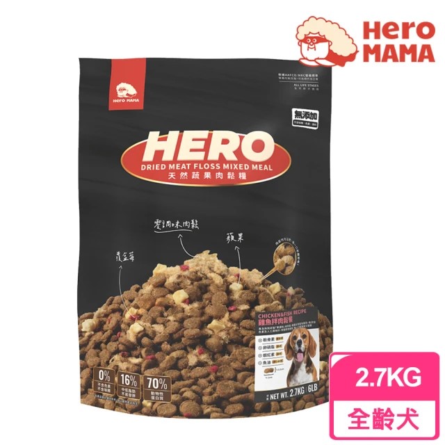 HEROMAMA犬用天然蔬果肉鬆糧 雞魚拌肉鬆餐 2.7kg