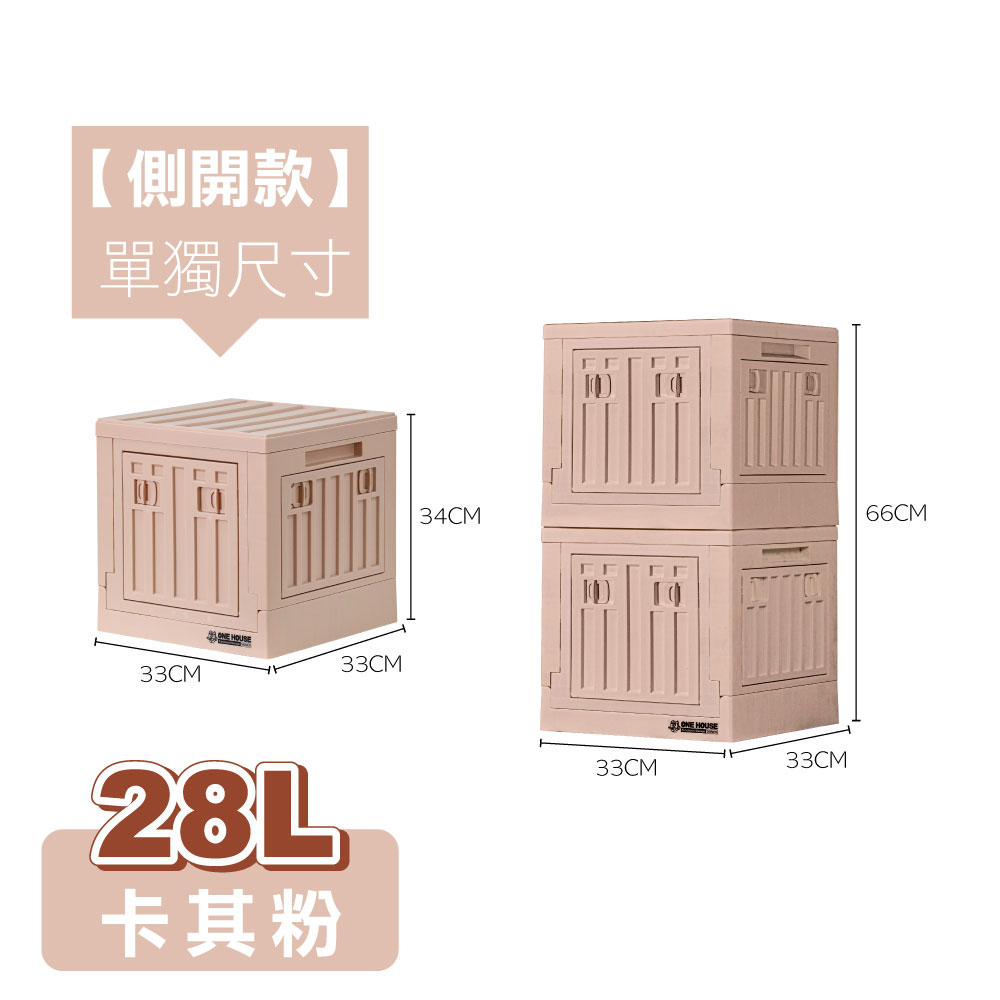 【ONE HOUSE】28L 小丹尼貨櫃五開門折疊收納箱_2入 側開款-卡其粉