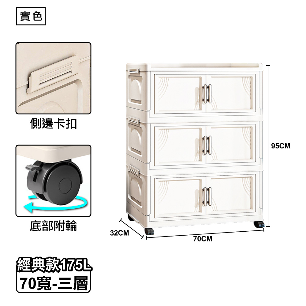 | 商品描述 | 【ONE HOUSE】大櫻經典款雙開門折疊收納櫃-規格任選(125L-50寬六層 175L-70寬三層 180L-60寬五層) 175L-70寬三層_實色:免安裝,四面展開即可使用、箱體可疊加,任意組合成 |