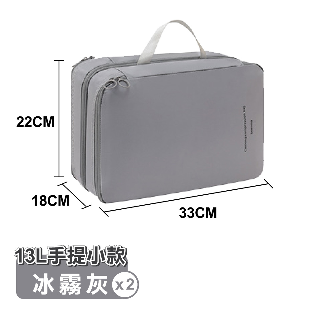 簡介 / | 【ONE HOUSE】收納趣防塵壓縮袋_13L手提小款 2入 冰霧灰:一組即可解決行李箱收納問題,可壓縮有效收納衣物,增加空間利用率,多功能使用,居家、旅行、出遊皆方便。20L~35 |
