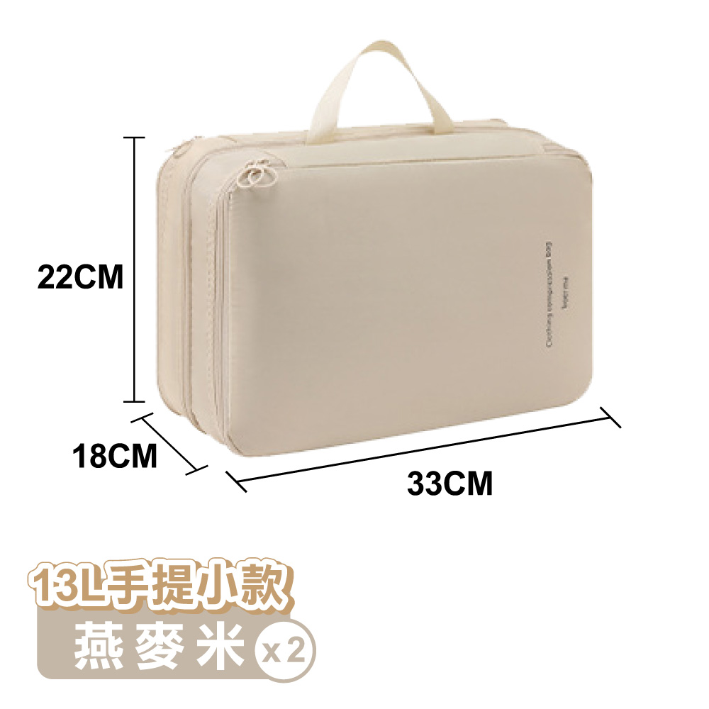 簡介 / | 【ONE HOUSE】收納趣防塵壓縮袋_13L手提小款 2入 燕麥米:一組即可解決行李箱收納問題,可壓縮有效收納衣物,增加空間利用率,多功能使用,居家、旅行、出遊皆方便。20L~35 |