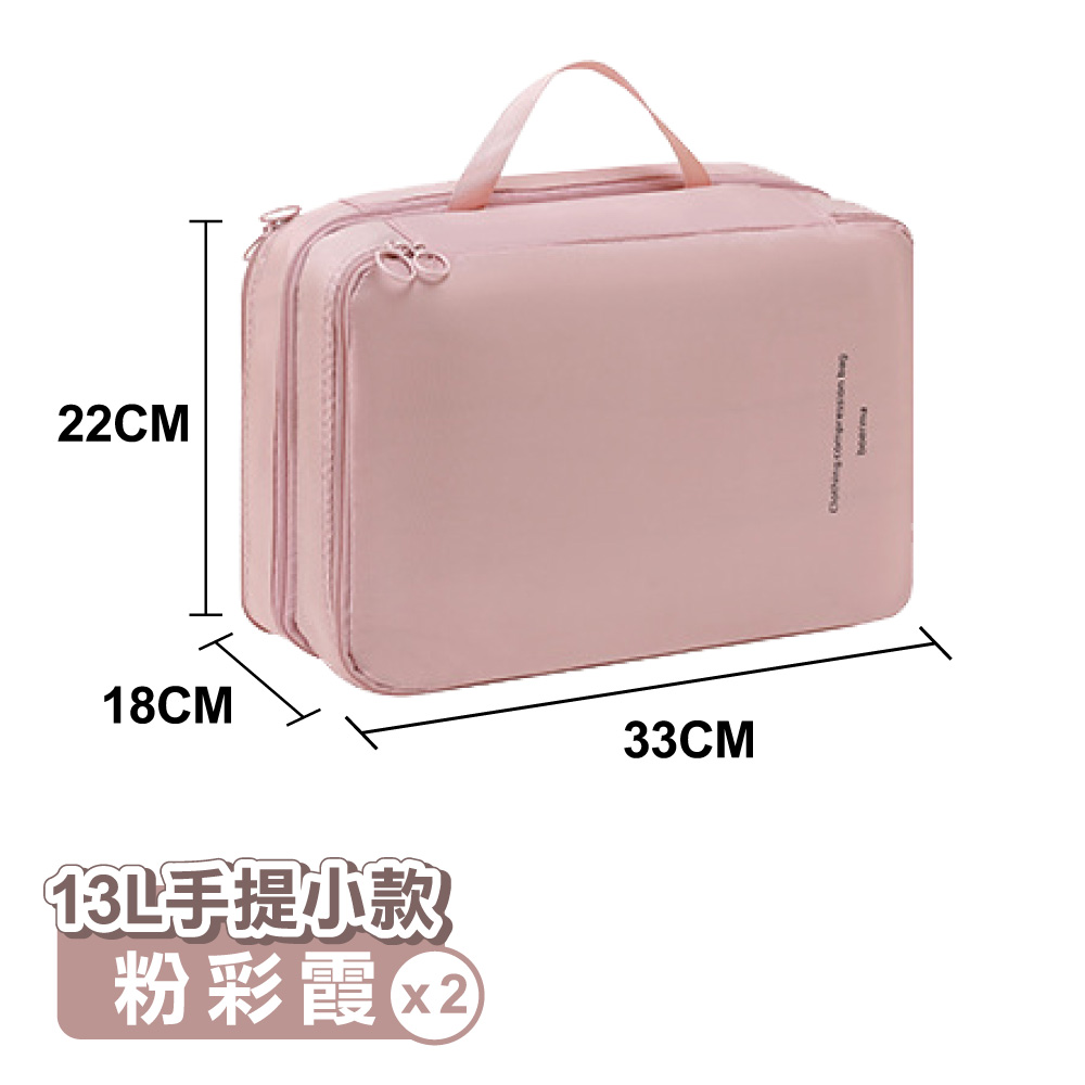 簡介 / | 【ONE HOUSE】收納趣防塵壓縮袋_13L手提小款 2入 粉彩霞:一組即可解決行李箱收納問題,可壓縮有效收納衣物,增加空間利用率,多功能使用,居家、旅行、出遊皆方便。20L~35 |