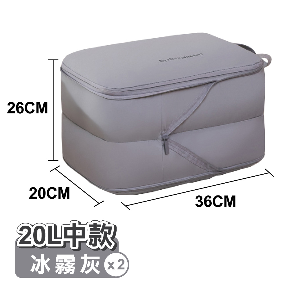 簡介 / | 【ONE HOUSE】收納趣防塵壓縮袋_20L中款 2入 冰霧灰:一組即可解決行李箱收納問題,可壓縮有效收納衣物,增加空間利用率,多功能使用,居家、旅行、出遊皆方便。20L~35L雙 |