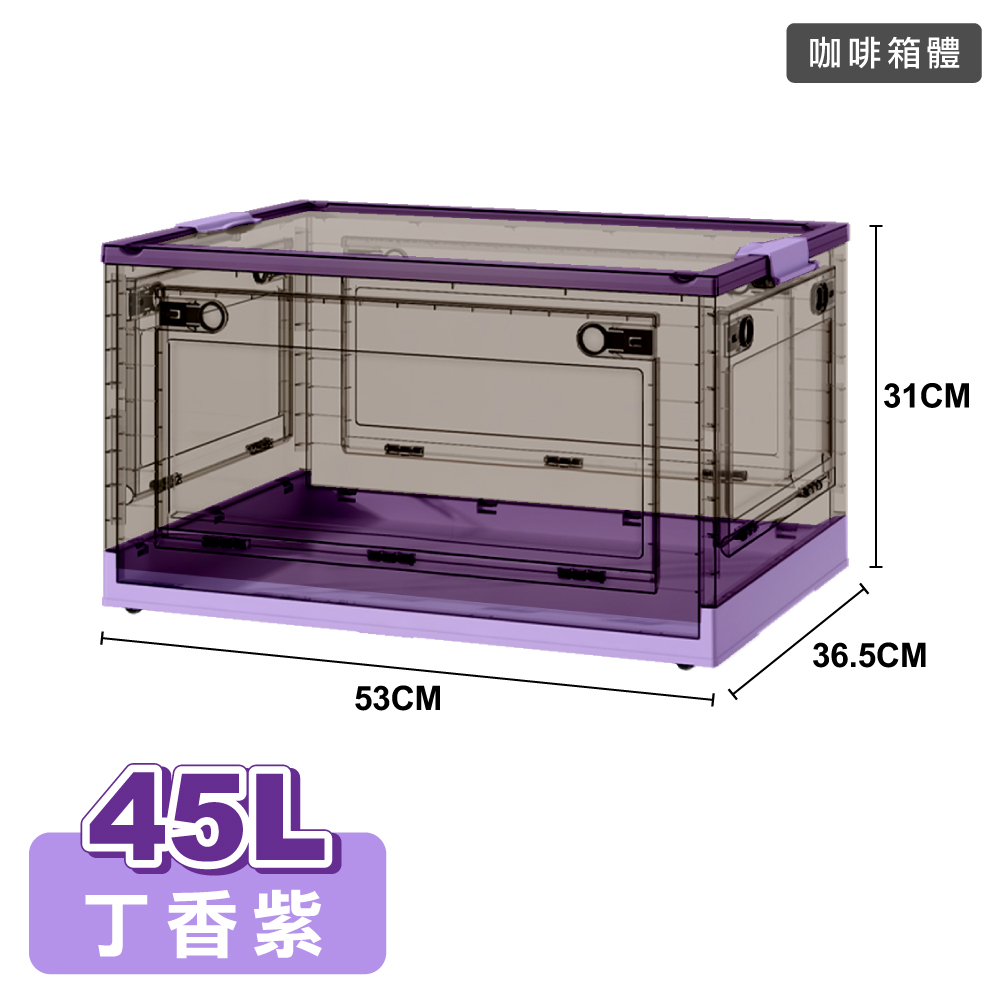 商品名 / | 【ONE HOUSE】45L加固款五開門折疊收納箱(1入) 咖啡箱體-丁香紫 |