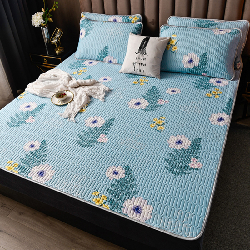 【ONE HOUSE】印花 素色 乳膠冰絲涼蓆-雙人 印花_雙人 -白海棠