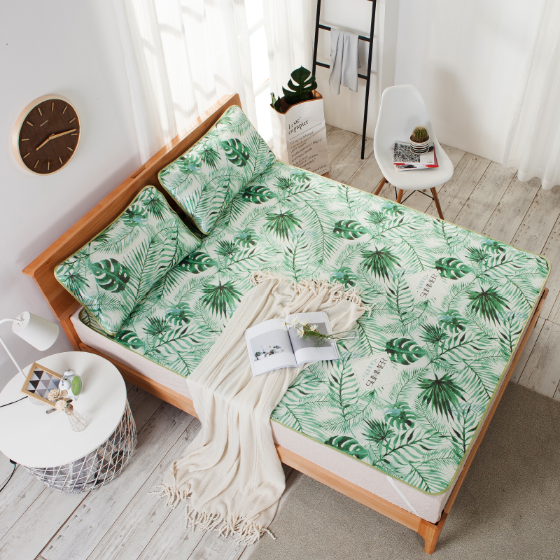 簡介 / | 【ONE HOUSE】韓式超涼爽冰絲涼蓆(雙人三件套) 雙人-綠鐵樹:優質的冰絲緹花工藝設計,讓涼蓆更加美觀典雅,。從床墊到枕套都是採用奢華冰絲料、精緻的寬邊圓角包邊設計, |