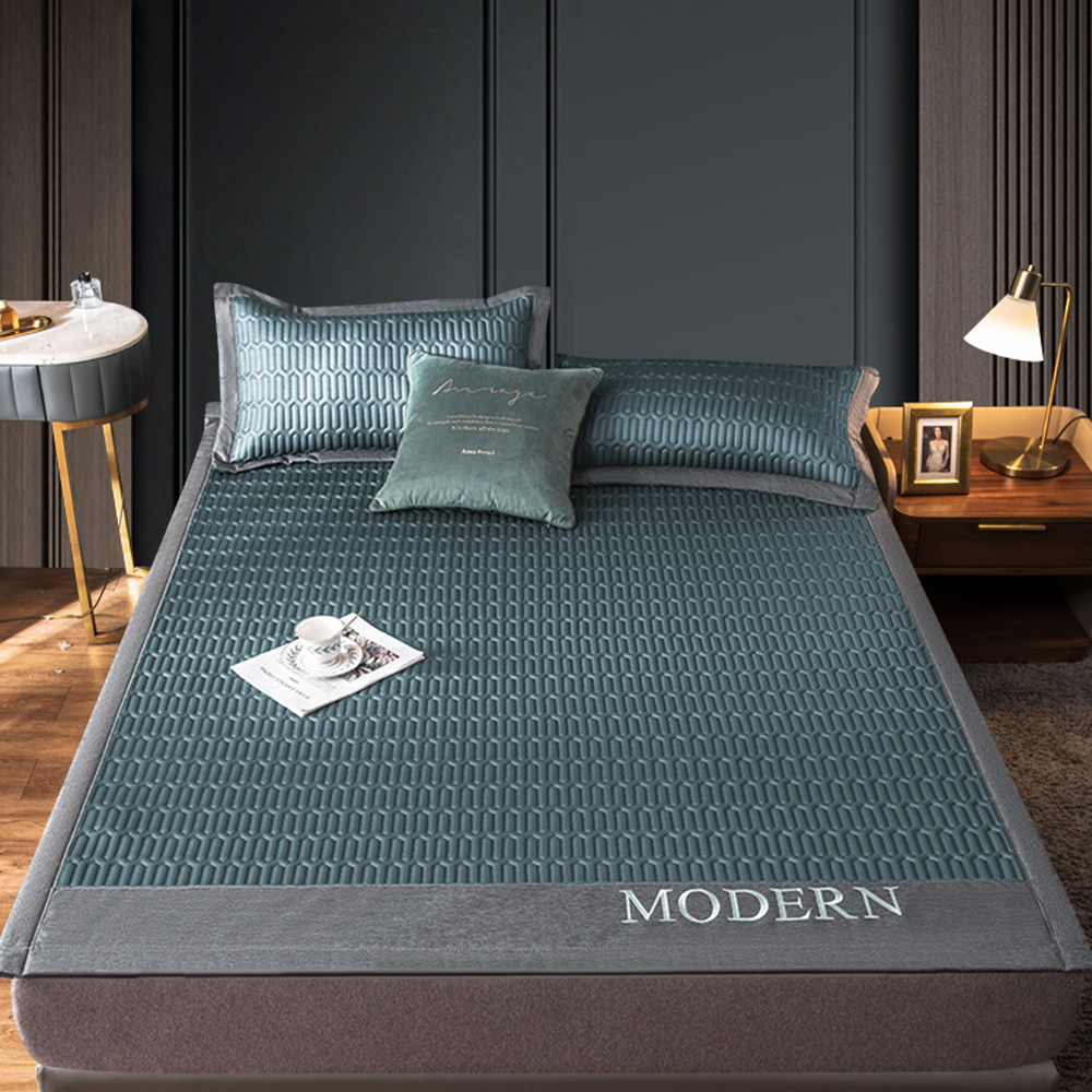 | 簡介 / | 【ONE HOUSE】典雅風乳膠冰絲涼蓆三件組-1.8M 雙人加大(1組) 雙人加大-深海藍:面料涼爽又舒適,透氣性良好,炎熱夏日的剋星;裁縫工藝,有效固定乳膠,不移位變形;可折疊 |