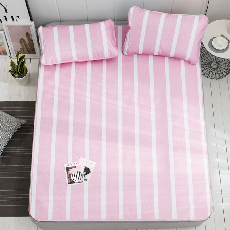 商品名 / | 【ONE HOUSE】日式超涼爽冰絲涼蓆(雙人加大三件套) 雙人加大-條紋粉 |