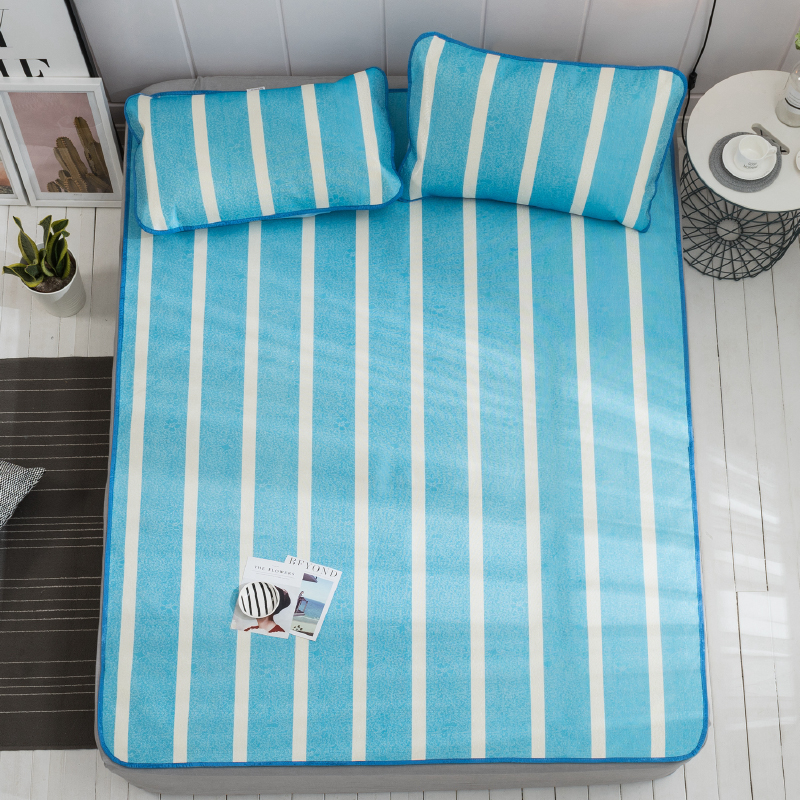 簡介 / | 【ONE HOUSE】日式超涼爽冰絲涼蓆(雙人加大三件套) 雙人加大-條紋藍:夏季使用,流汗後不沾黏,清爽舒適、透氣、親膚,涼而不冰,安心舒服睡眠。高級優質冰絲蓆面不鉤絲、 |