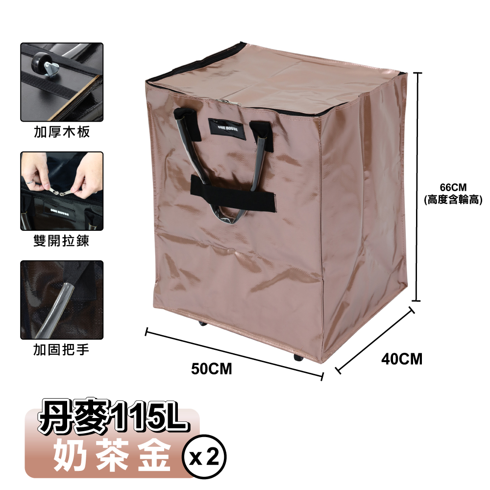 【ONE HOUSE】115L 丹麥附輪超大容量手提防水折疊購物車_特大款 2入 奶茶金