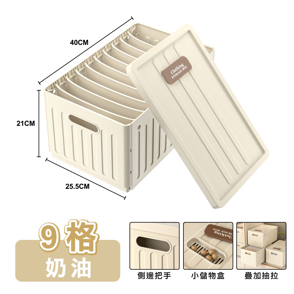 商品名 / | 【ONE HOUSE】20L 加櫻可分類衣褲收納盒-帶蓋9格(1入) 奶油 |