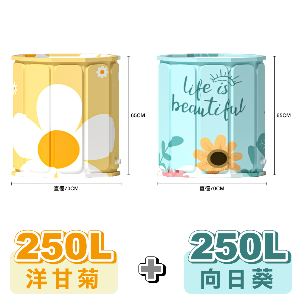 【ONE HOUSE】泡泡樂免安裝加厚折疊泡澡桶摺疊浴缸-70寬 2入 硬板款-洋甘菊+向日葵