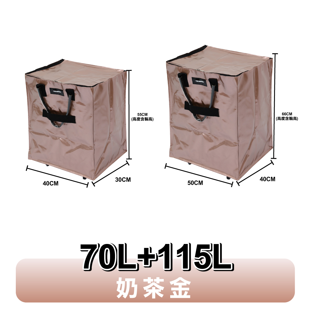 【ONE HOUSE】TOP1熱銷 丹麥附輪超大容量手提防水折疊購物車-2件套 70L+115L 70L+115L-奶茶金