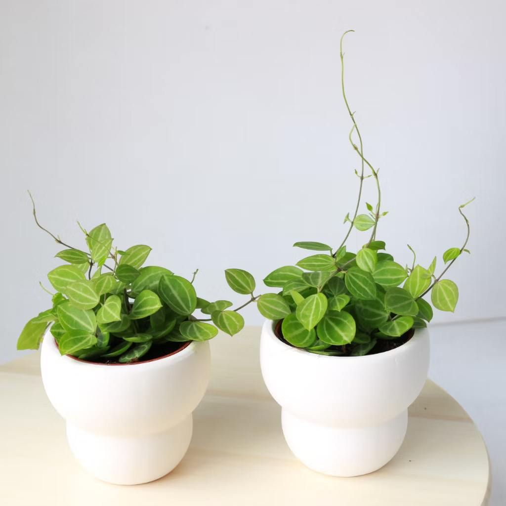 內容簡介 **西瓜皮毬蘭****Dischidia ovata Benth ** ⦿ 植物 西瓜皮毬蘭是風不動屬,不是毬蘭屬窩;葉片有白色的縱紋,超像迷你西瓜皮,非常可愛,是藤蔓植物;冬天的時候葉片會變成紅色,非常容易養護,不需要特別關照 ⦿盆器選擇 搭配圓葉交角的盆器是非常可愛的雙圓造型的米白色素燒盆,超吸水透氣有型,搭配圓葉就是各種可愛 盆器尺寸開口直徑 : 10公分高度 : 9公分盆栽整體高度大約是20公分 ⦿日照 西瓜皮椒草是可以放在室內或室外的植物,需要的是弱散光,有遮蔽物的陽光 ⦿給水方式 很多人問我們到底要怎麼給水?? 我們都強烈建議不要用澆的,用水盆放在植栽下方讓它自動吸水,待一兩個小時過後,再把水盆拿掉,這是一種最自然的給水方式,讓植物的根系自行吸收水分;多久澆一次水也是人們常問的,只要你摸土乾了或者植栽重量整個變輕了,就可以放上水盆讓它吸水,所有的植物都是一樣的窩當然我們也建議要適時的給植物補充營養,一個月給一次到兩次營養液是很洽當的窩,只要把營養液滴在水盆哩,一百CC一滴讓植物根系自動吸收就可以囉 ⦿土培植栽照顧方式⦿禮品包裝方式 如果是要選擇送禮, 不用特別加收費用,我們會在植栽上綁上好看緞帶;有送禮需求者備註說明就可以窩