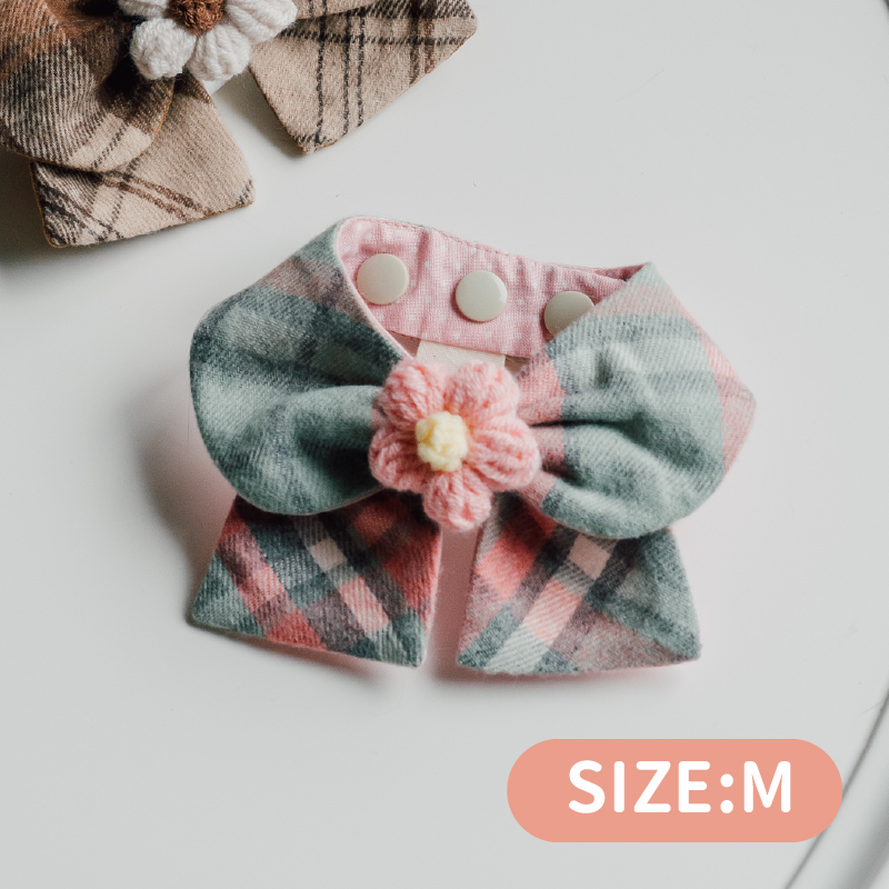 商品名 / | 貪貪手作寵物領巾 春天款 綠野菱格結 M |