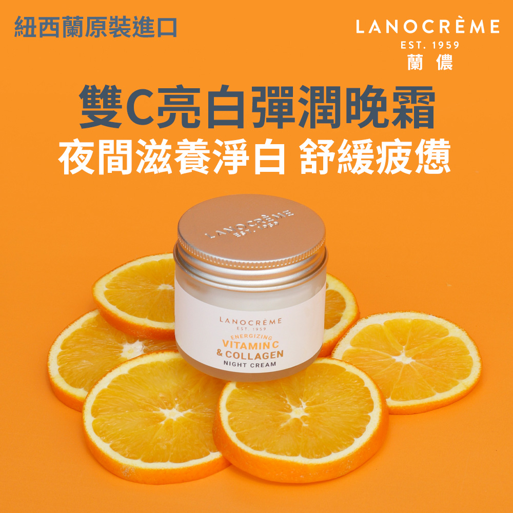 內容簡介 一夜滋養 回復淨白彈潤夜間滋養淨白 舒緩疲憊維他命C & 海洋膠原蛋白 延緩老化完美搭檔提亮、緊緻 從底層補充膠原蛋白 維持肌膚健康實現年輕透亮的理想膚質玻尿酸、可可籽油能補水保濕 夜間深層修復、滋養肌膚全膚質適用規格說明Lanocreme蘭儂雙C亮白彈潤晚霜 Lanocreme Energizing Vitamin C & Collagen Night Cream容量:50g全成份:Aqua (Water), Aloe Barbadensis (Aloe Vera) Leaf Juice, Caprylic Capric Triglyceride, Ethylhexyl Palmitate, Glycerin, Polysorbate 60, Cetearyl Alcohol, Theobroma Cacao (Cocoa) Seed Butter, Sodium acrylate Sodium acryloyldimethyl Taurate Copolymer, Persea Gratissima (Avocado) Oil, Isoamyl Laurate, Benzyl Alcohol, C15-19 Alkane, Copernicia Cerifera (Carnauba) Wax, Sorbitan Stearate, Lanolin, Sodium Citrate, Parfum (Fragrance), Polyglyceryl-6 laurate, Salicylic Acid, Tocopherol (Vitamin E), Polyglycerin-6, Sorbitan oleate, Hydrolyzed (Marine) Collagen, Sorbitan isostearate, Ascorbyl Tetraisopalmitate (Vitamin C), Sorbic Acid, Helianthus Annuus (Sunflower) Seed Oil, Sodium Hyaluronate (Hyaluronic Acid), Phenoxyethanol, Magnolia Officinalis Bark Extract, Chlorphenesin, Dipotassium EDTA, Citral*, Limonene*, Linalool*, Citronellol** Naturally occurring in Fragrance使用注意事項:使用前請先塗抹適量於耳後或手腕內側肌膚做過敏測試,使用時若有不適請立即停止使用並諮詢專業醫師保存方式:請存放在陰涼乾燥處,避免陽光直射有效期間:3年保存期限(日 月 西元年)、批號:請見包裝上標示※因產品外盒為特殊印刷,因此在進口與寄送運輸過程,外盒有些微磨損情況,但不影響產品本身品質。