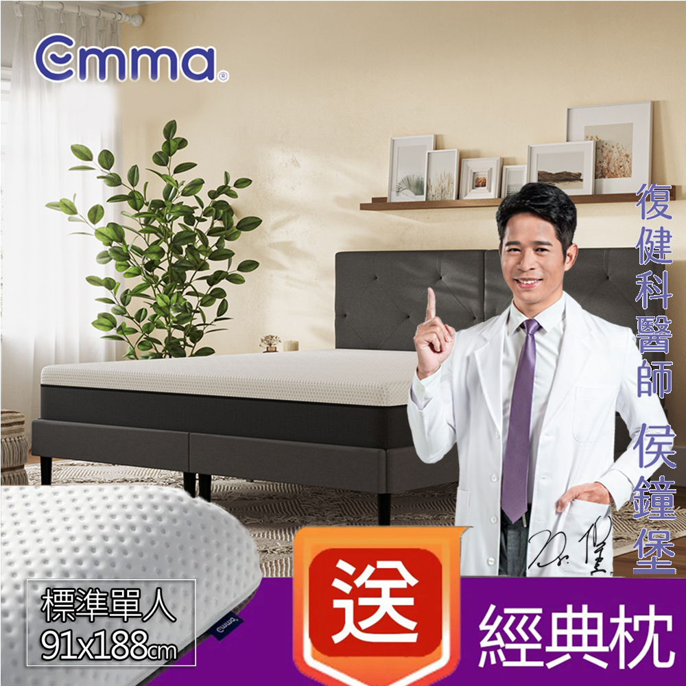 內容簡介 預計出貨7-10個工作天(床墊)送貨前皆會先與客戶約到貨時間,請留意陌生電話,已便順利預約(床墊)床墊尺寸指南厚度皆爲25公分 (+ - 1cm)尺寸及重量- 標準單人床:3尺 x 6尺2 (91 x 188 cm) 約 17 KG- 加大單人床:3尺5 x 6尺2 (106 x 188 cm) 約 20 KG- 標準雙人床:5尺 x 6尺2 (152 x 188 cm) 約 30 KG- 加大雙人床:6尺 x 6尺2 (182 x 188 cm) 約 33 KG- 特大雙人床:6尺 x 7尺 (182 x 212 cm) 約 40 KG組合商品内容床墊,記憶枕,床墊保護套各一組單人尺寸含一顆記憶枕,雙人尺寸含兩顆記憶枕軟硬適中10年保固期- Airgocell ® 涼感透氣專利記憶棉- Visco彈性減壓記憶棉- AeroFlex®獨立筒- 高支撐性HRX棉層- 可拆洗床墊布套: 白色布套由獨特高科技原料製成,可調節溫濕度。深灰色部分透氣性及抓地力地高,加裝把手方便你輕鬆移動床墊。白色跟灰色床墊布套均可輕易從床墊取下並放置於洗衣機內清洗。- 軟硬度: 以 1-10 為標準(1為最硬10為最軟),Emma Hybrid 獨立筒床墊的軟硬度大概為5。----------------------------------------------(經典枕)70 x 40 cm總重量:1500 g淨重:1200 g(床墊)送貨前皆會先與客戶約到貨時間,請留意陌生電話,已便順利預約回收舊床墊處理、支付1000元現金給司機、屬司機個人幫客人服務。不經過公司程序。 商品規格品牌:Emma床墊規格:單人3尺類型:獨立筒床墊參考軟硬度:適中長 (公分):188寬 (公分):91厚度 (公分):25商品保證我們所提供為全新產品,並提供以下保證:保固期限:10年保固範圍:新品瑕疵保固來源:原廠保固商品出貨訂單成立後7~10日出貨