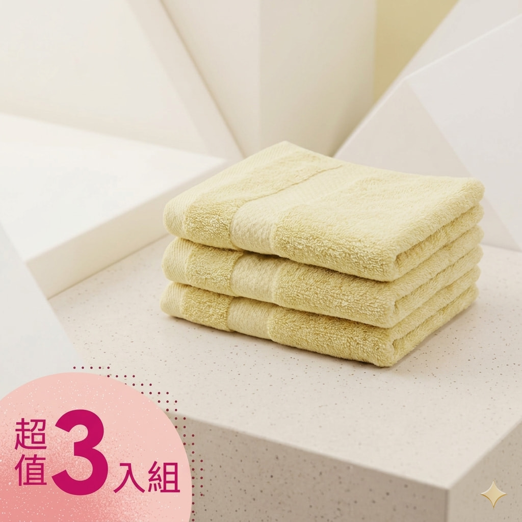 【MORINO摩力諾】 飯店級厚磅緞條毛巾組(3入組) 鵝黃
